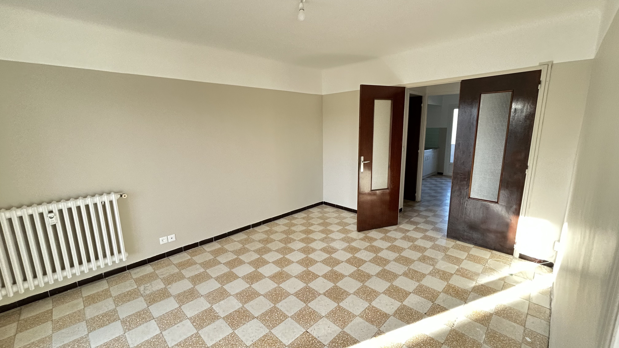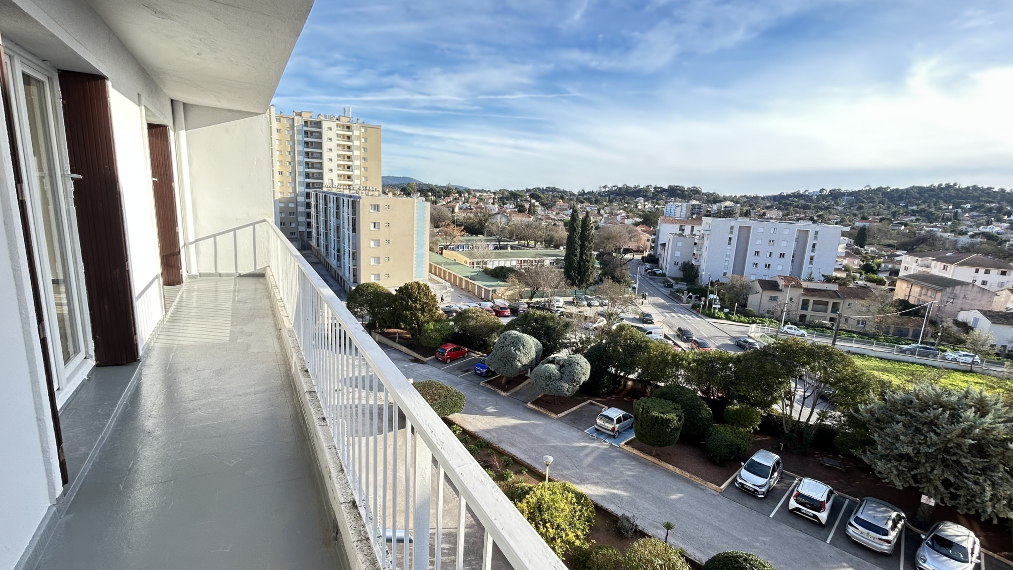 Toulon Est, quartier La Palasse, dans une résidence fermée bien entretenue, T4 d'environ 67m² au 5eme et dernier étage, avec grand balcon sud-ouest sans vis-à-vis. Double séjour, 2 chambres (possibilité 3eme chambre), cuisine indépendante, salle d'eau et WC indépendant. Ascenseur, chauffage collectif. Grand parking collectif fermé. (possibilité de garage en option à 80€). Loyer 600 € plus 154 € de charges (avec le chauffage). Disponible rapidement.